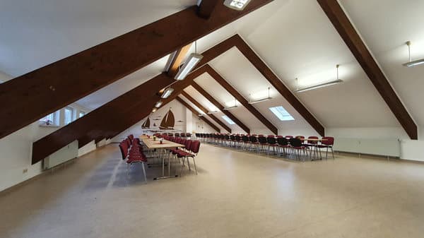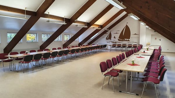 Der Veranstaltungssaal befindet sich in ruhiger Lage im Obergeschoss des Gebäudekomplexes Talgut in Lauenhain, in unmittelbarer Nähe zum wunderschönen Ufer der Zschopau. Er ist voll saniert und mit einer modernen Einbauküche ausgestattet. Ob private Veranstaltungen oder Firmenevents, hier können Sie Ihre Veranstaltung ganz individuell nach Ihren Wünschen gestalten. Für die Kleinsten gibt es einen neu gestalteten Spielplatz im Gelände des Talgutes. Vom 150 m entfernten Fähranleger Lauenhain können Fahrten mit Fährschiffen (beispielsweise auch als Rundfahrt) unternommen werden. Während der Campingsaison (April bis Oktober) können Ihre Gäste im mitgebrachten Zelt oder Wohnwagen auf dem direkt angrenzenden Campingplatz übernachten.
